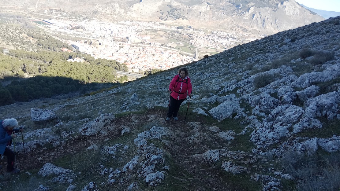 Dirigimos nuestros primeros pasos hasta el Mirador de Isabel II que nos sitúa frente a la aún adormecida ciudad de Loja, al sol perezosamente estirada a nuestros pies. Un repique de campanas llama a misa a los creyentes. La fortaleza de la Alcazaba se nos muestra en todo su esplendor, trayéndonos al recuerdo historias de moros y cristianos de antaño, protagonizados por el alcaide Aliatar, suegro del mismísimo Boabdil. Desde allí cruzamos la carretera, para dirigir por el paseo nuestros pasos hacia el Barranco del Confín, ascendiendo por un serpenteante sendero, primero entre pinos y luego por bosque mediterráneo hasta el Manantial del Confín que está totalmente seco. Aunque ha llovido bastante, la tierra estaba tan reseca que no se anima a verter sus aguas por fuentes y manantiales.