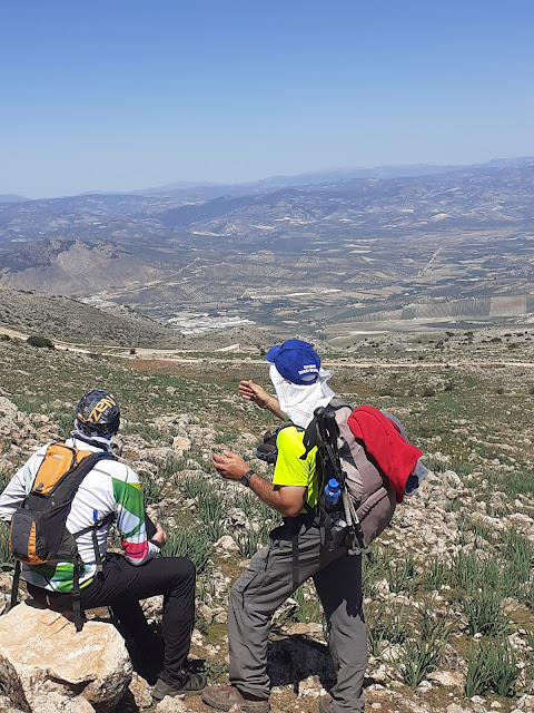 A primera hora de la mañana del Viernes Santo nos concentramos en Loja 21 senderistas -"pescaeros" y 2 perritas, para organizar los vehículos y subir hasta la Sierra de Loja, al parking en el que se encuentra el Sendero del Lapiaz en el Cerro de las Cabras (1642 msnm) donde se inicia y finaliza esta ruta.