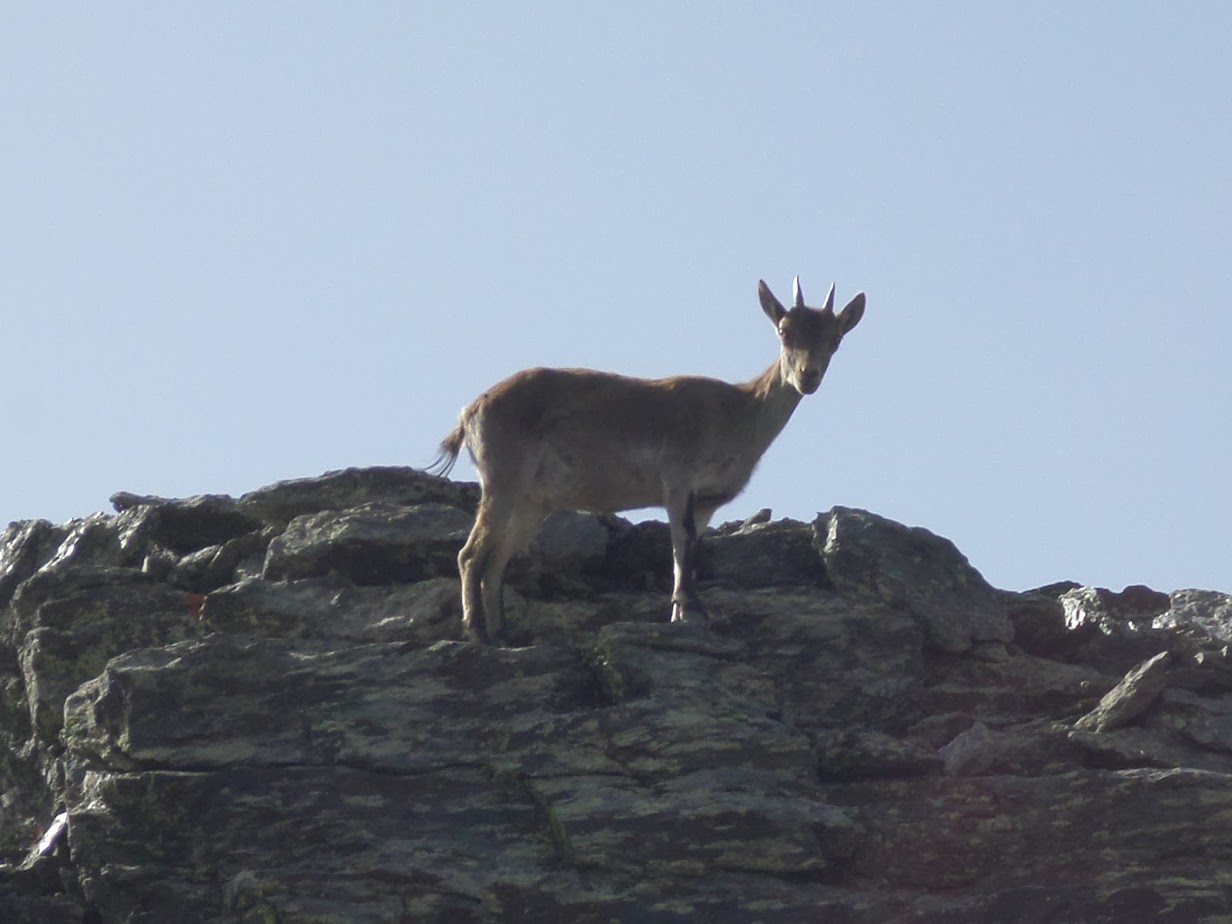 Antes de tomar el sendero de los Tajos de la Virgen y que baja a los Lagunillos de la Virgen, nos entretenemos acercándonos al mirador que nos permite bellas panorámicas de los valles situados en la cara sur, sureste de Sierra Nevada (Barranco del Poqueira), así como pasear por el lugar en el que tradicionalmente se dice la noche del 5 al 6 de agosto, la misa en honor de la Virgen de las Nieves. Lugares emblemáticos que no hay que perderse y que además dan cobijo a multitud de cabras y machos monteses, que pacen tranquilamente, por desgracia, no se asustan ya de la presencia humana y permiten ser fotografiados sin dificultad.
